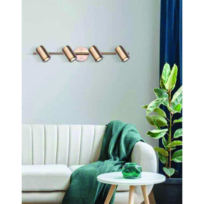 The golden spotlight uses an industrial but traditional design, and timeless elements add to the classic and warm atmosphere of the room.